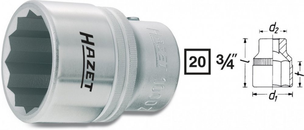 Vnitřní nástrčný klíč 3/4" dvanáctihranný 36mm HAZET 1000Z-36 - HA001637