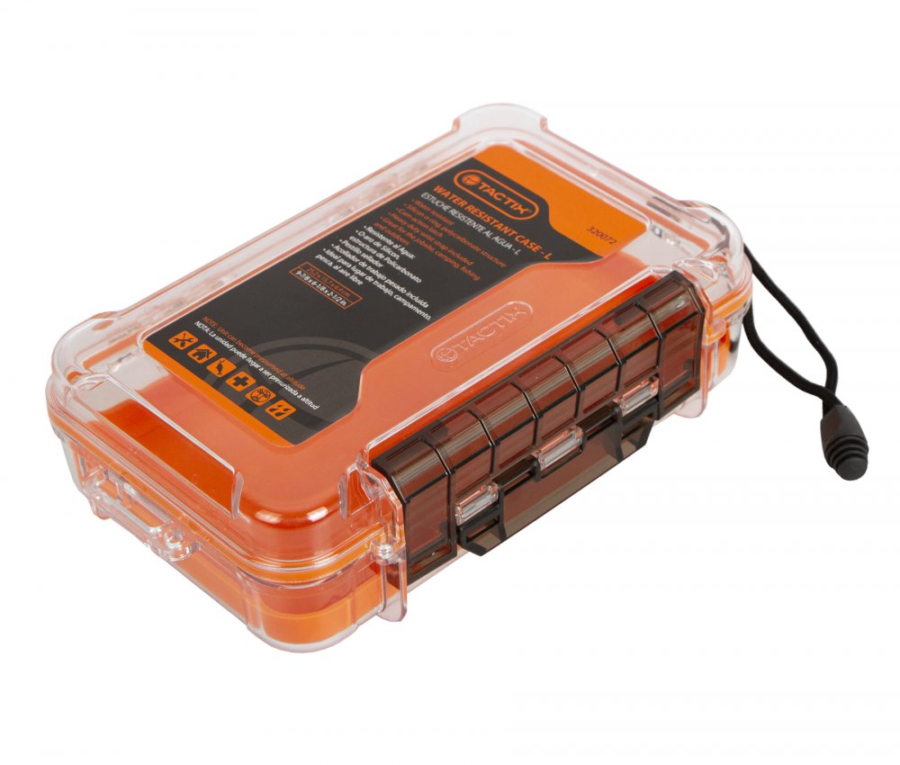 Vodotěsné plastové pouzdro s poutkem na zápěstí. Rozměry: 230 x 150 x 68 mm. Celý popis