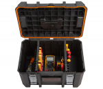 Robustní, pevný a také vodotěsný kufr zajistí bezpečné uložení vašeho nářadí a ochrání ho tak před poškozením, prachem a vodou.