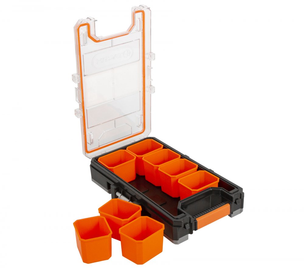 Vodotěsný plastový organizér na drobný materiál jako jsou například šroubky či matice.