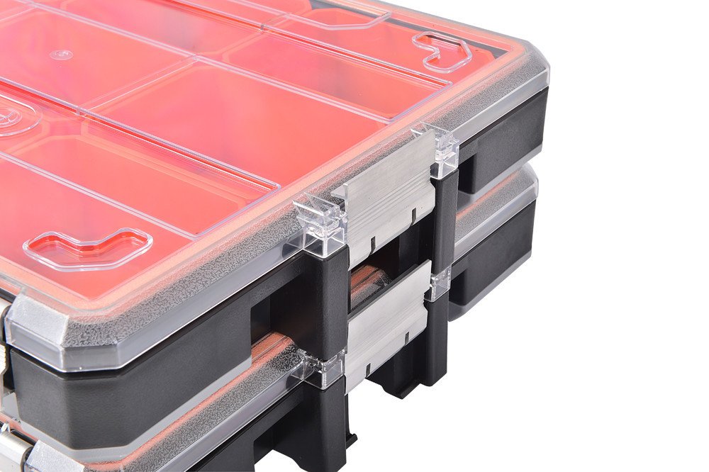 Vodotěsný plastový organizér na drobný materiál jako jsou například šroubky či matice.