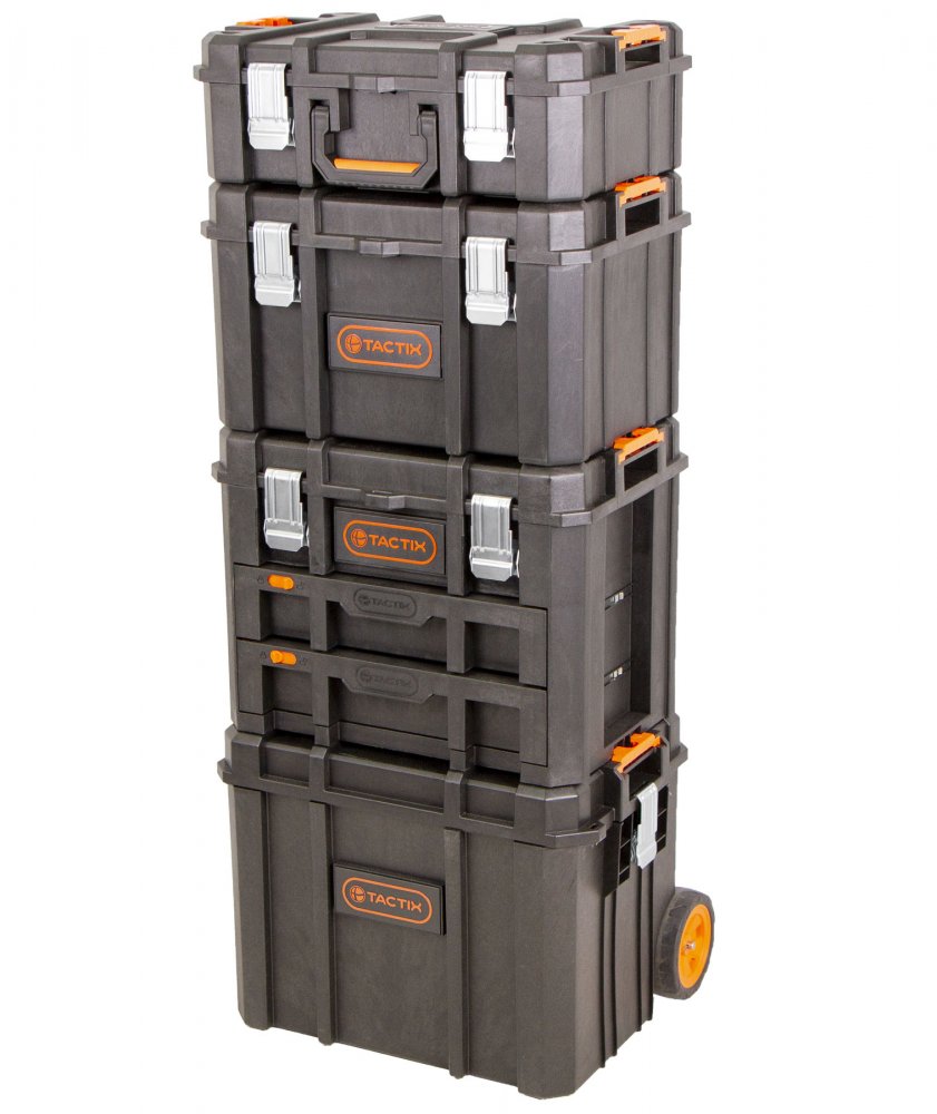 Lze jej stohovat například s modely TC320360 a TC320365, čímž lze rozšířit úložný prostor. Díky pevné plastové konstrukci je odolný vůči nárazům a opotřebení.