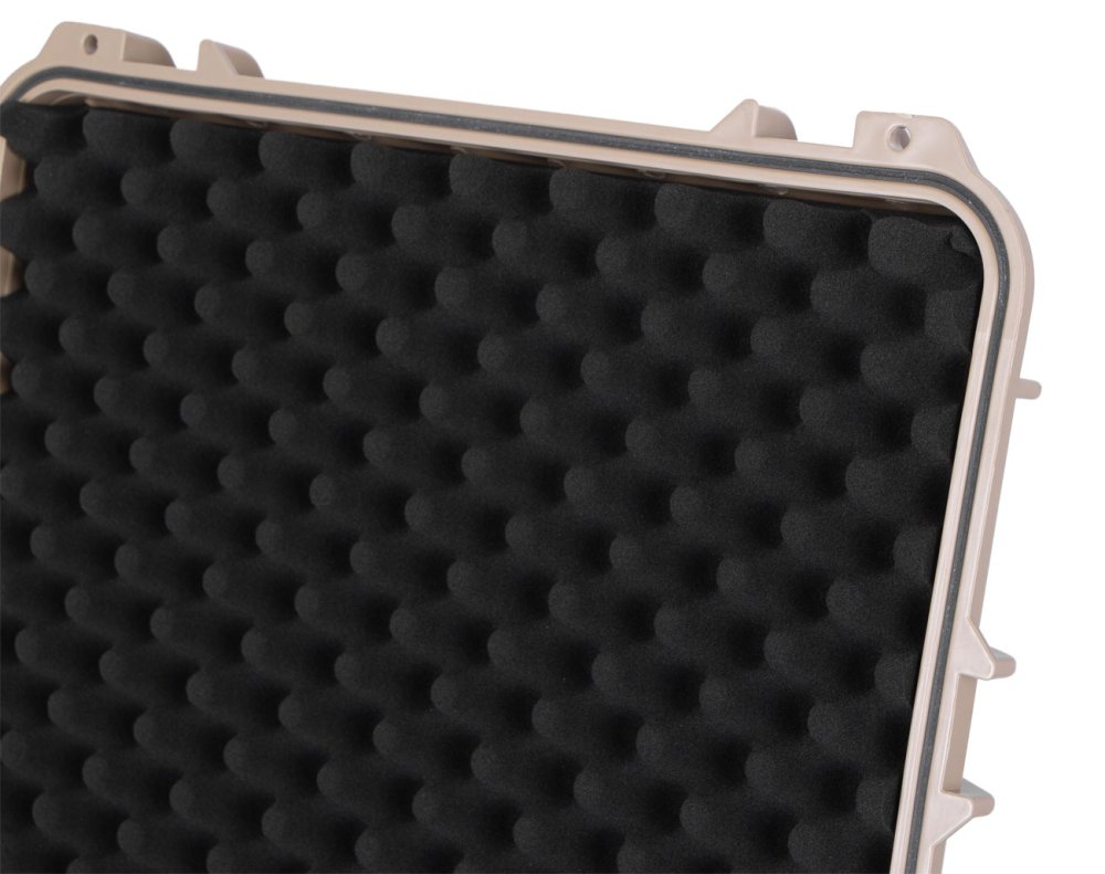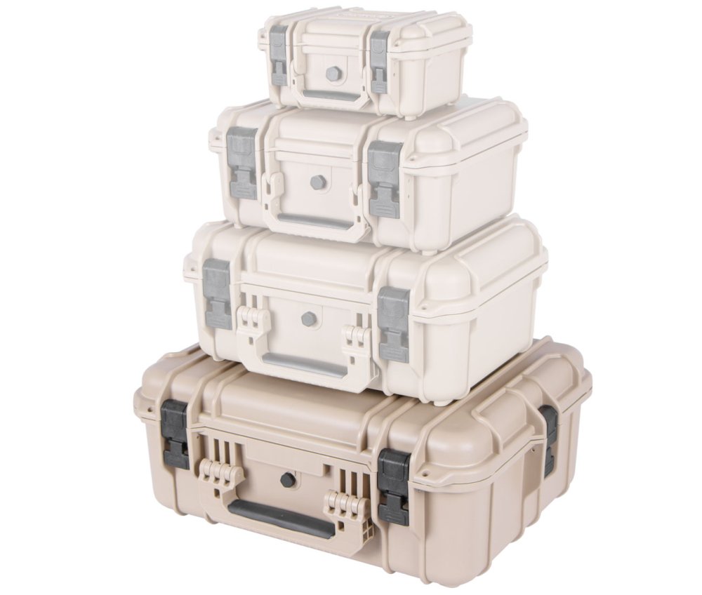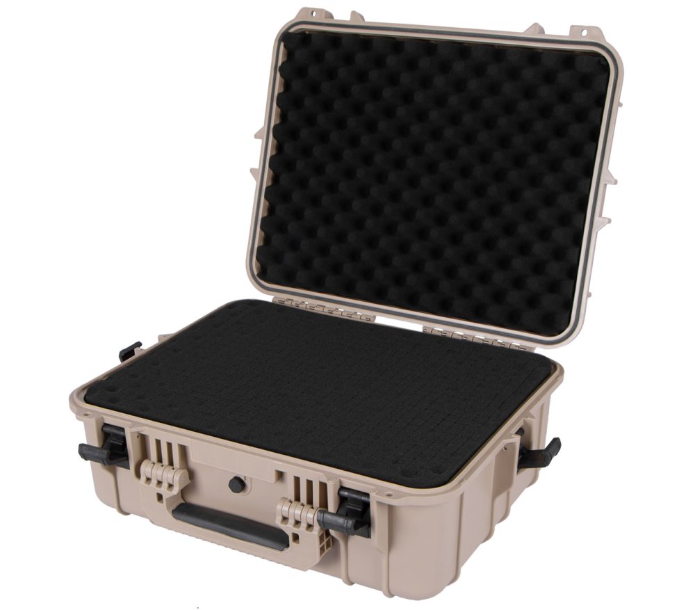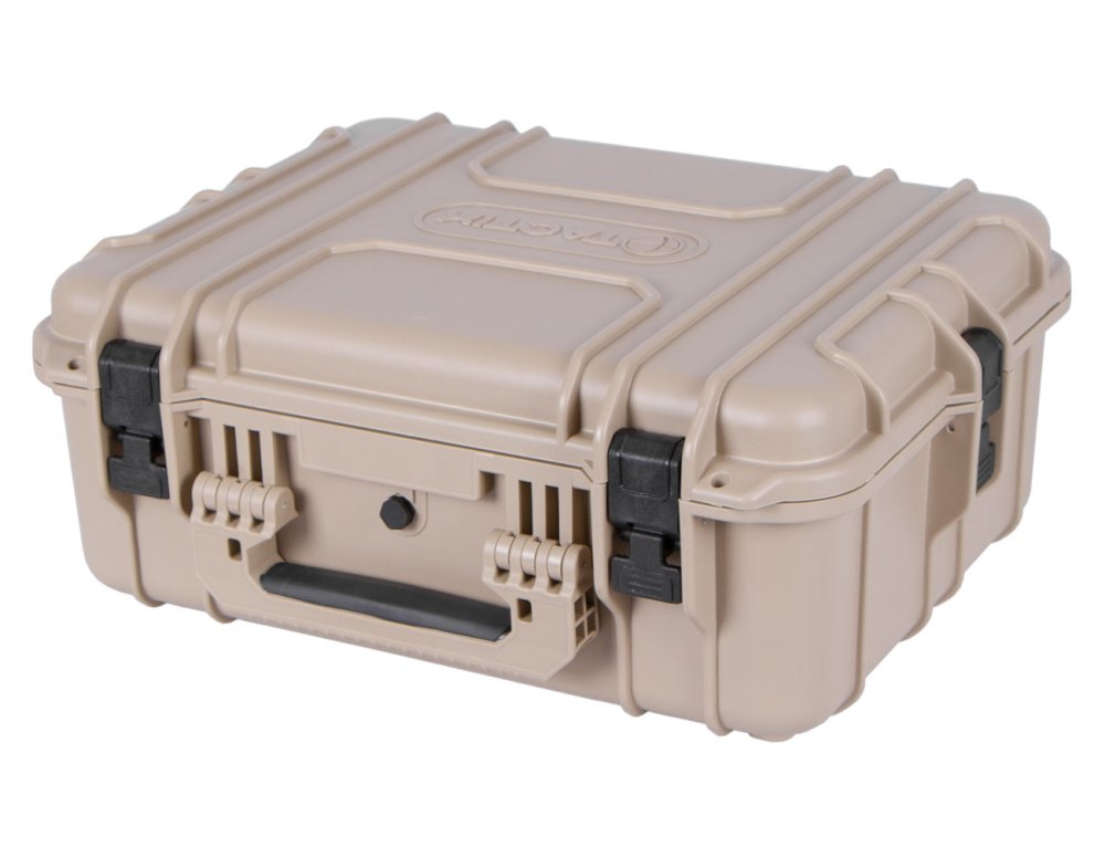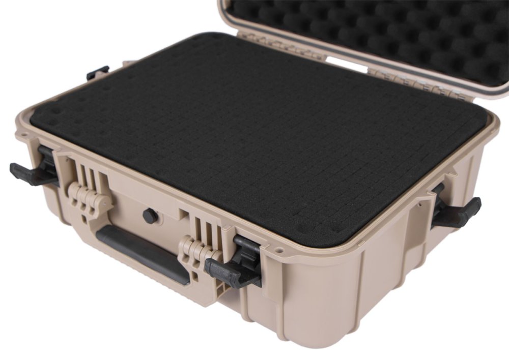 Vodotěsný plastový kufr v pískové barvě, pro různé druhy nářadí a vybavení.