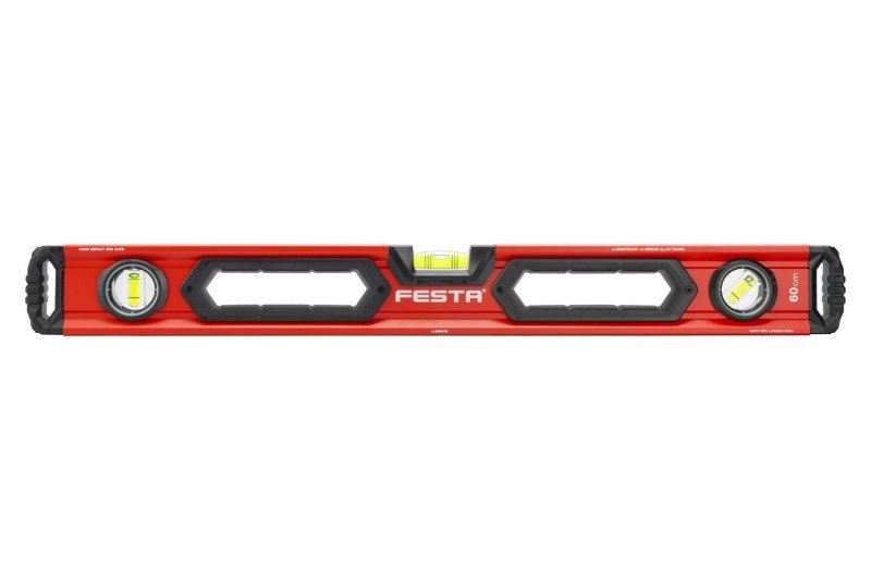profesionální vodováha přesnost 0,5 mm / m - každý kus elektronicky testován hliníkový profilovaný a vyztužený profil síla stěny 2,2 mm 3 libely z akrylového skla nárazuvzdorné - 1 horizontální válcová* se sklonovými ryskami 1 a 2% (+válcový tvar libely, oproti kvádrové, zajišťuje skvělou viditelnost ze všech úhlů pohledu vertikální 45° UV stabilní a fluorescenční kapalina v libelách pro lepší viditelnost pogumované nárazuvzdorné koncovky pro větší odolnost při případných pádech 2 praktická madla - lepší manipulace s vodováhou při měření záruka na libely 10 let