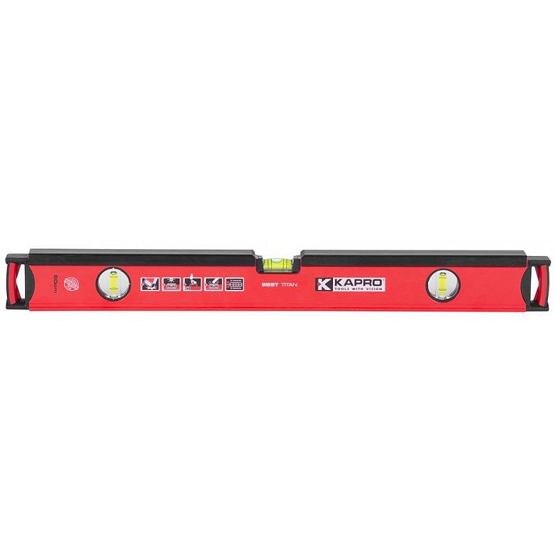 Vodováha KAPRO 985T TITAN je vybavena jednou horizontální libelou a dvěma vertikálními libelami odolnými vůči nárazům.
