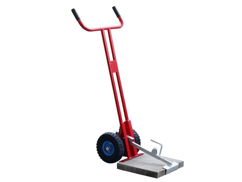 vozík - rudl na dlažbu s nastavitelným rozsahem 35 - 60 cm celokovová robustní konstrukce, dlouhý rám s masivními řidítky - snadná manipulace i s těžkou betonovou dlažbou formátu 60 x 60 cm nafukovací kola na ložiscích - snadný pojezd na jakémkoli povrchu na stavbě nebo zahradě nosnost až 100 kg VŽDY DBEJTE NA TO, ABY SAMOSVORNÉ ČELISTI SVÍRALY DLAŽBU CELOU PLOCHOU! Při převozu dlažby dbejte zvýšené opatrnosti a rychlost přizpůsobte povrchu daného terénu!