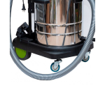 Vysavač je dobře pojízdným díky kombinaci dvou velkých kol a dvou otočných, vybaven pohodlnou rukojetí pro přenášení a madlem pro strkání.