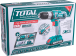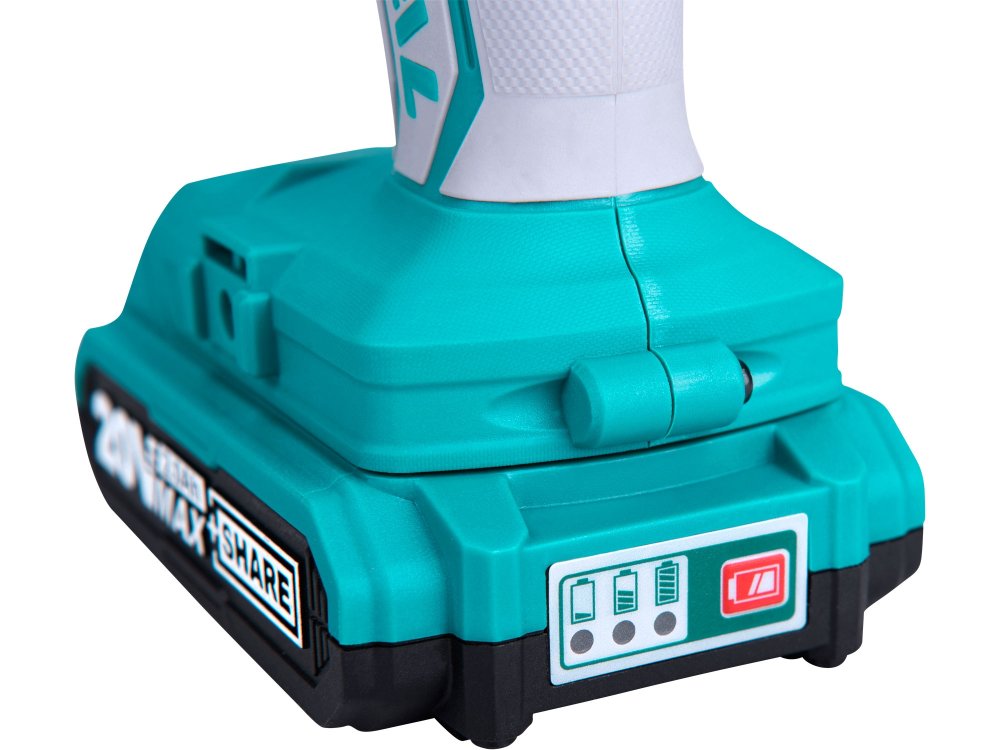 Lehký a výkonný dvourychlostní vrtací aku šroubovák s příklepem a vysokým utahovacím momentem pro vrtání a šroubování do kovu a dřeva. Akumulátor lze použít ve všech 20V aku strojích z řady Total. Díky Li-ion technologii je možné akumulátory kdykoliv dobíjet, aniž by se tím snižovala jejich kapacita. Li-ion akumulátor také ztrácí energii vlivem samovybíjení velmi pomalu a vydrží dlouho nabitý.