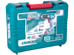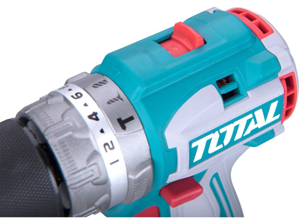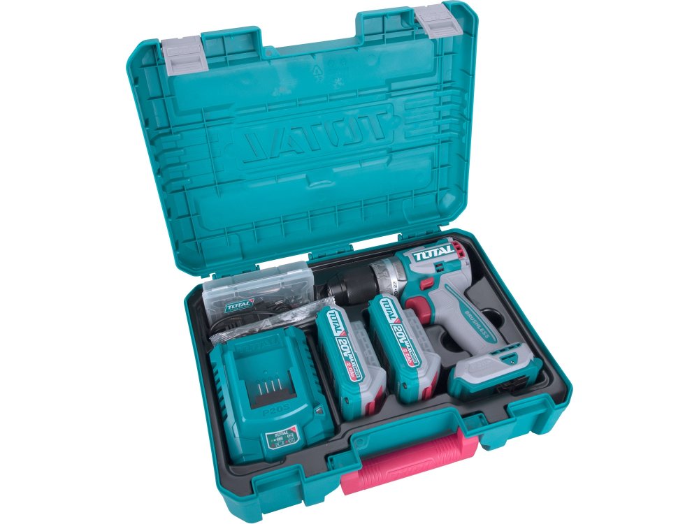 Nový typ aku vrtacího šroubováku s příklepem z řady industrial je vhodný pro všechny běžné pracovní úkoly a projekty v domácnosti, dílně a zahradě. Šroubovák má celokovovou hlavu, 22 stupňů utahovacích momentů + vrtání a vrtání s příklepem. Šroubovák má nový typ ergonomické antivibrační rukojeti pro příjemný úchyt a práci. Součástí šroubováku jsou dvě baterie 2000mAh a jeden kus rychlonabíječky. Jak baterie, tak nabíječka je kompatibilní se všemi stroji Total využívajícími baterie. Vše je uloženo v plastovém kufru pro snadnou přepravu. Je určen pro:- vrtání bez příklepu do dřeva, plastu i kovů- vrtání s příklepem do zdiva- utahování a povolování šroubů nebo vrutů• Nepřítomnost napájecího kabelu poskytuje svobodu a komfort při práci a manipulaci s nářadím. Nářadí lze tak s výhodou použít pro práci v místech, kde není možné použít elektrické nářadí s napájecím kabelem z důvodu nedostupnosti distribuční elektrické sítě. Toto nářadí je vybaveno systémem ochrany nářadí a akumulátoru, který v případě hrozícího přetížení nebo přehřátí automaticky odpojí napájení motoru. Systém tak chrání životnost nářadí i akumulátoru.