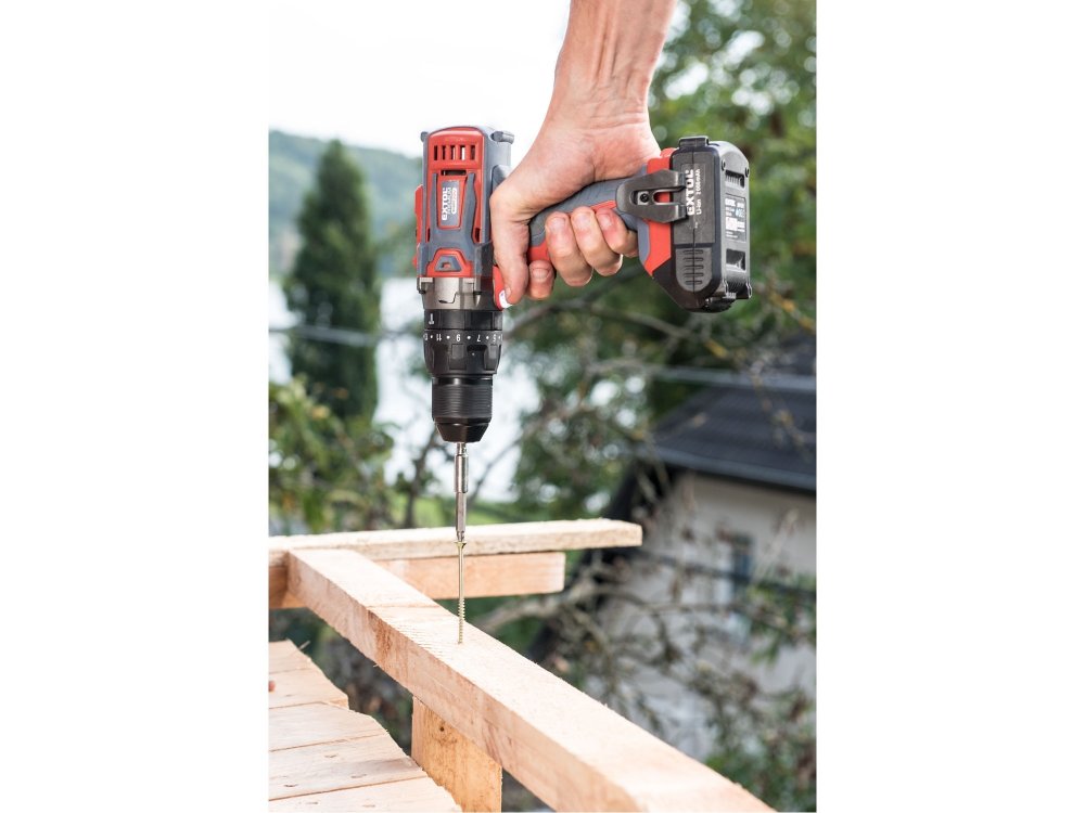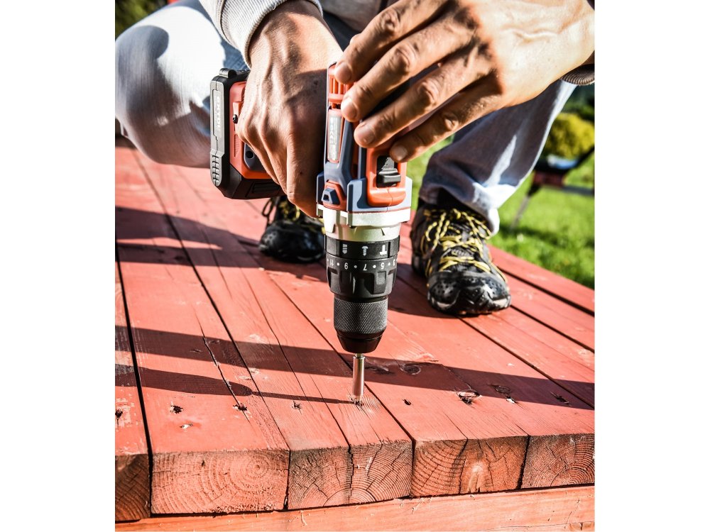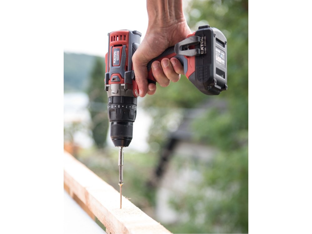 dvourychlostní převodovka umožňuje nastavit odpovídající otáčky pro konkrétní druh práce přepnutím z vrtání na vrtání s mechanickým příklepem si poradí i s tvrdšími materiály a zdivem kvalitní celokovové sklíčidlo s aretací pro snadnou výměnu nástrojů 16 stupňů kroutícího momentu plus vrtání, šroubování, příklep – ideální pro každé použití integrovaná LED svítilna usnadní práci v tmavých prostorách pogumovaná rukojeť tlumí vibrace a činí práci příjemnější a bezpečnější univerzální akumulátor SHARE20V