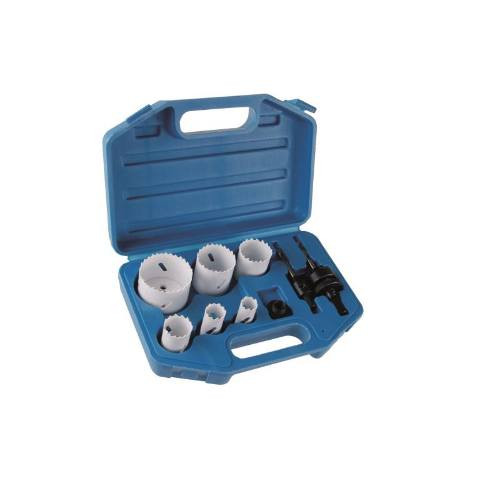 sada korunkových vrtáků BI-METALL vysoce kvalitní korunky z HSS Bi- Metallu korunky průměr: 19, 22, 29, 38, 44, 57 mm vhodné pro vrtání dřeva, dřevotřísky, sádrokartonu a kovů do síly 8mm baleno v plastovém kufru