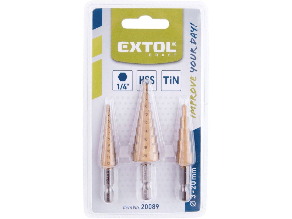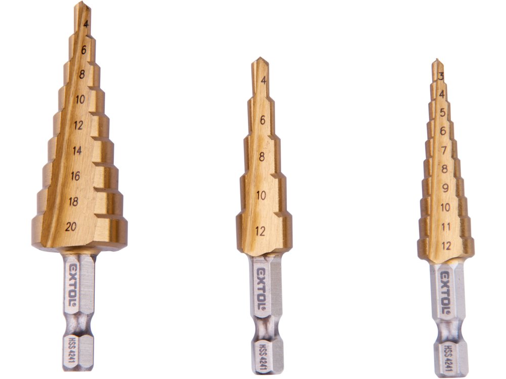 Vrtáky stupňovité, sada 3ks, O 3-20mm, HSS