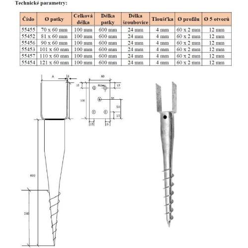 - "U" v názvu zemního vrutu udává šířku profilu U-patky pro uchycení dřevěného trámu