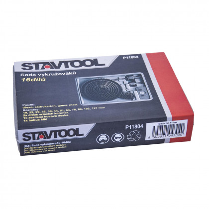 | Součást balení: | 2x držák korunek, vodící vrták, imbus klíč, vykružovací korunky 19-127 mm |