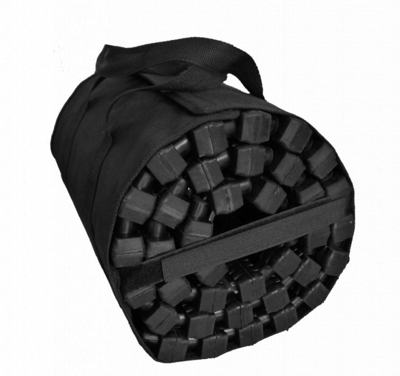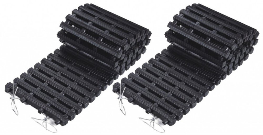 Kombinace pevných gumových hranolů spojených ocelovým lanem zajišťuje pevnost a dostatečnou trakci pro vyprošťované vozidlo.