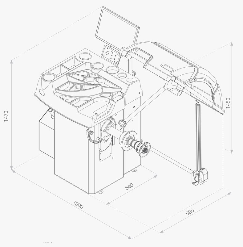 Pro průměr disku 8 - 30", max. šířka kola 1,5 - 20", automat 3D, LCD display, průměr hřídele 40 mm.