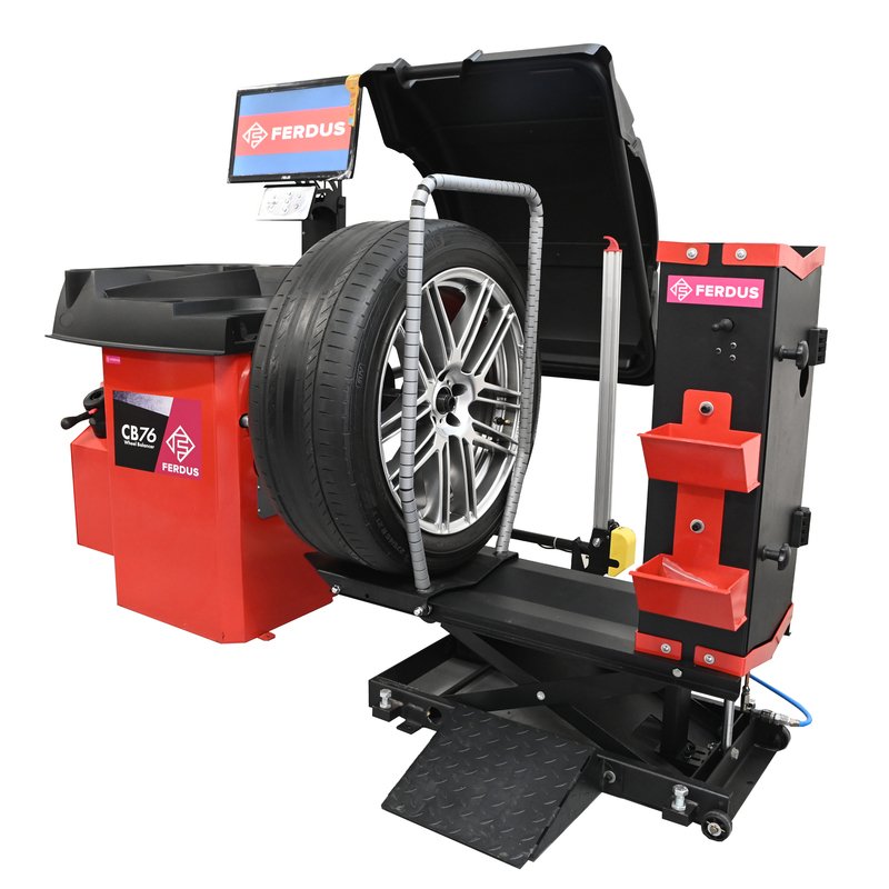 Model CB76 je vybaven brzdícím motorem, který kolo zastavuje v poloze nevývažku, a laserem pro přesné umístění závaží.