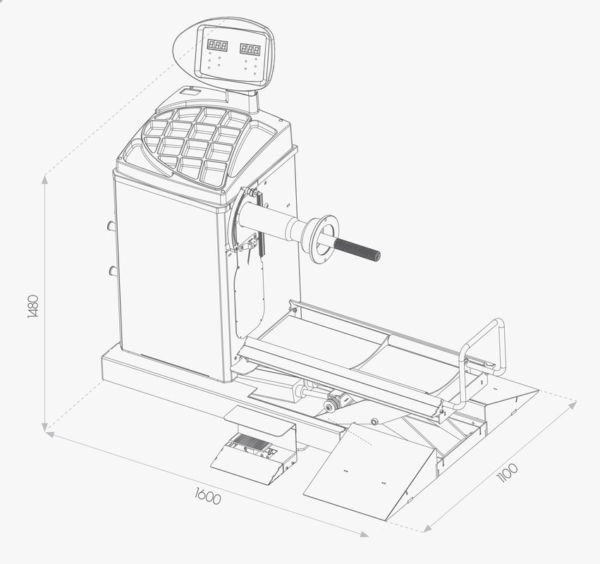 K příjemné práci přispívá pneumatický zvedák kol s nožním ovládáním. CB46 plně vyhoví požadavku na vyvažování i velkých a širokých kol, protože má délku hřídele 410 mm.