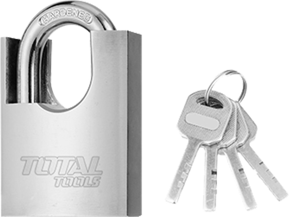 Ocelový zámek proti vypáčení, Velikost: 40 mm, Hmotnost: 566g, Materiál těla zámku: Železo, Mosazný válec zámku, Speciální konstrukce zámkové vložky Se 4 ks železných klíčů.