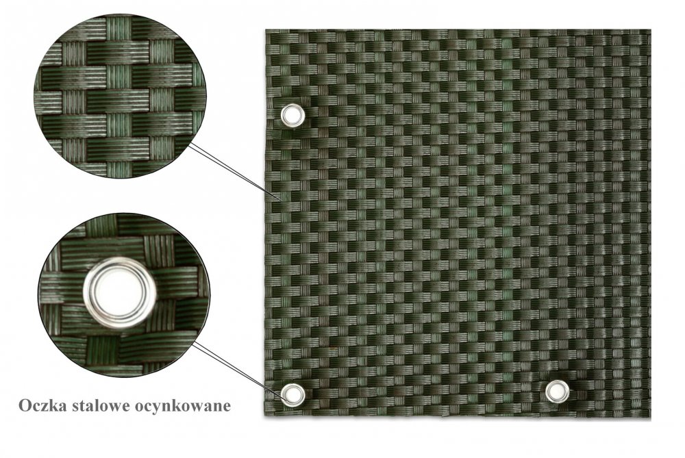 »  OSTATNÍ  »  Nezařazeno  »  Zelená plastová ratanová stínící rohož "umělý ratan" s oky (role) - 300 x 75 cm