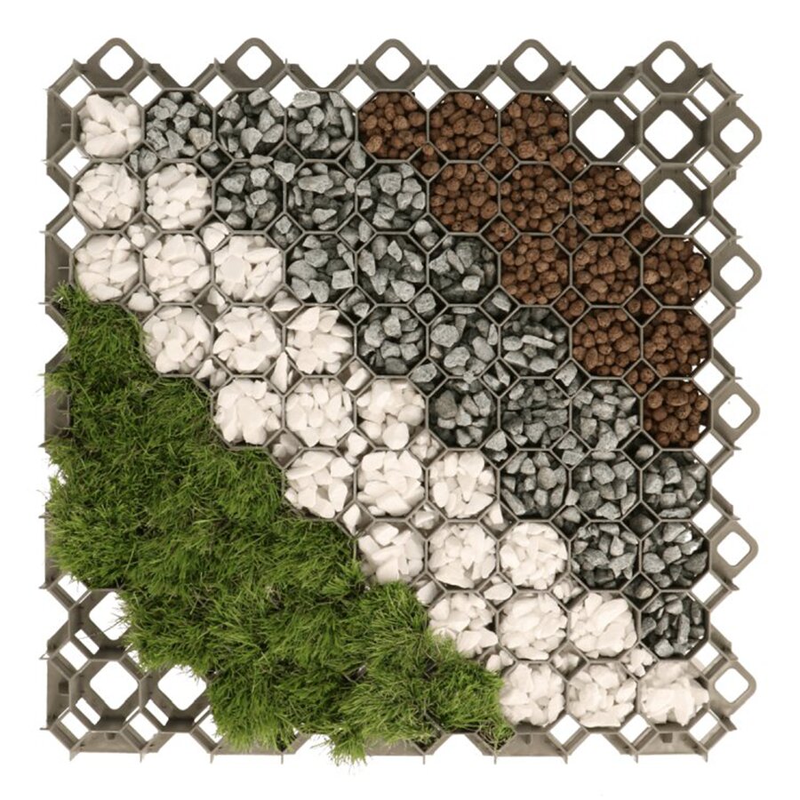 Barva je zelená, umožňující univerzální použití, velmi dobře splyne s travnatou plochou. Jedná se o výrobek ze 100% recyklovaného plastu, barva se proto může u jednotlivých kusů nepatrně lišit. Materiál je 100% recyklovaný a recyklovatelný, směs Polyetylenu a Polypropylenu, mrazuvzdorný a odolný proti UV záření. Výrobek je ekologický, šetrný k životnímu prostředí a neutrální k podzemním vodám, odolný vůči alkoholu, kyselinám i zásadám (posypovým solím, amoniaku, kyselým dešťům, atd.).