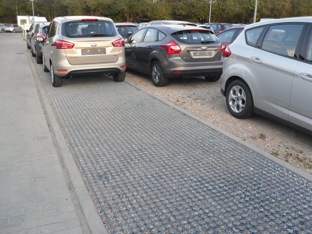 Prostor v mřížkách můžete nechat i prázdný. Mřížky na lícní straně mají protiskluzové výčnělky, na spodní straně jsou opatřeny fixačními hroty, po obvodu jsou zámky pro spojování s ostatními zatravňovacími mřížkami. Jedinečný otevřený design umožňuje volný růst travních kořenů ve všech směrech. Buňky mřížek jsou částečně uzavřené ze spodní strany dlažby, tedy nedochází k migraci výplně.