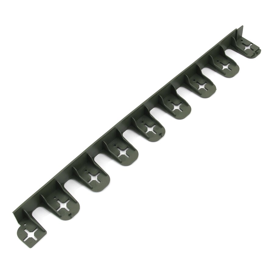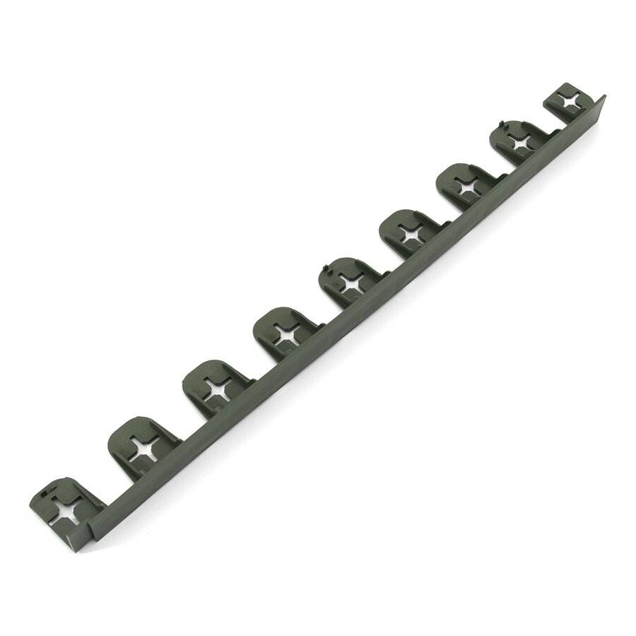 Pro fixaci obrubníku je potřeba dokoupit kotvící hřeby. Pro měkké podloží postačí plastové kotvící hřeby, pro pevnější (jílovité) podloží volte kovové hřeby. Plastový obrubník se kotví k zemi pomocí 9 ks kotvících kolíků na 80 cm. Po ukotvení se dosype plastový obrubník zeminou do požadované výšky.