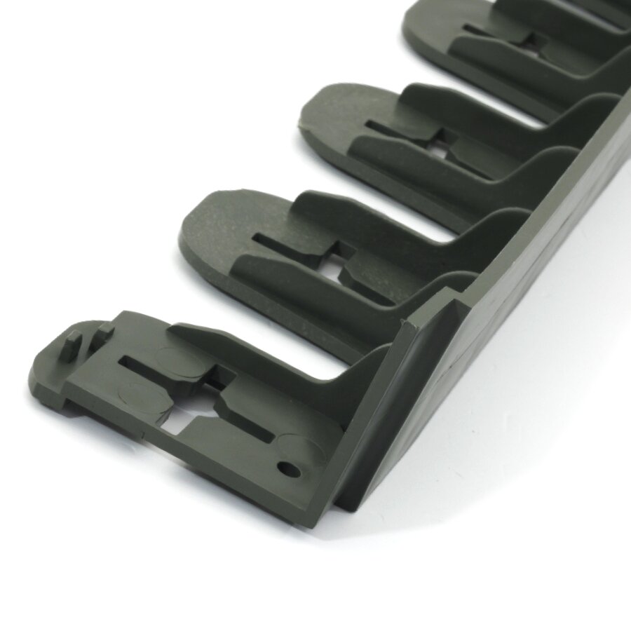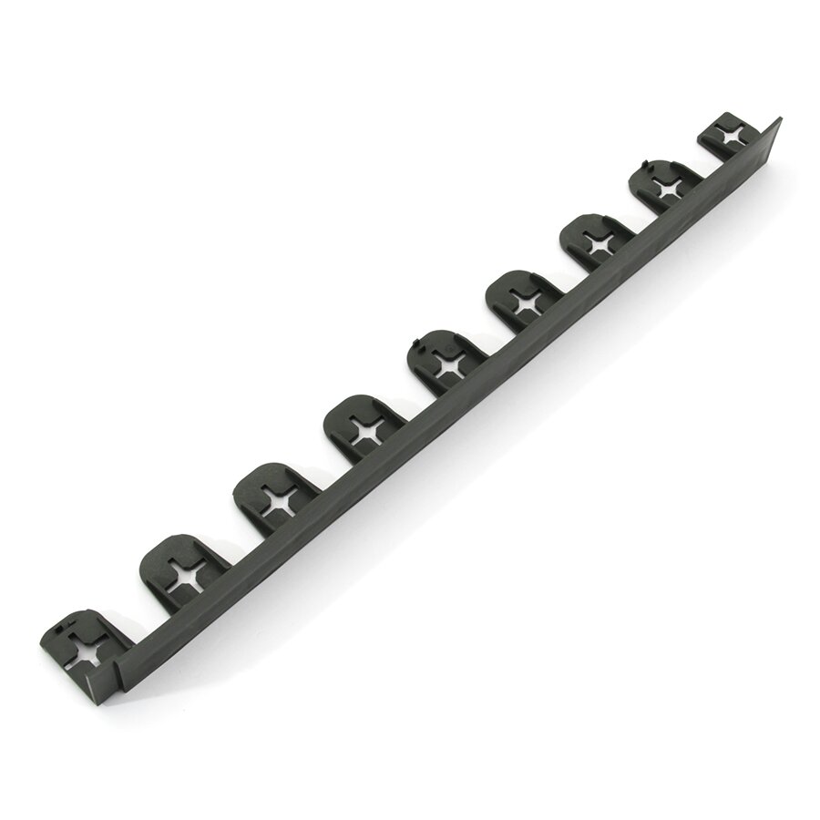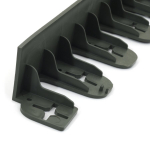 Pro fixaci obrubníku je potřeba dokoupit kotvící hřeby. Pro měkké podloží postačí plastové kotvící hřeby, pro pevnější (jílovité) podloží volte kovové hřeby. Plastový obrubník se kotví k zemi pomocí 9 ks kotvících kolíků na 80 cm. Po ukotvení se dosype plastový obrubník zeminou do požadované výšky.