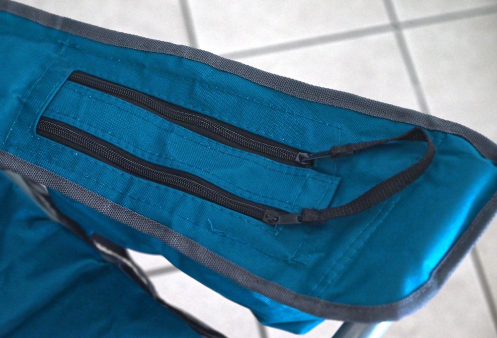 Samotný podsedák je na levém boku doplněn síťovanou kapsou vhodnou pro umístění různých předmětů. Levá opěrka židle je doplněna úložným prostorem s izotermickou vrstvou se zapínáním na zip. Úložný prostor je vhodný pro umístění malého množství potravin, které si déle udrží svou teplotu. Pravá opěrka židle je doplněna o držák nápojů.